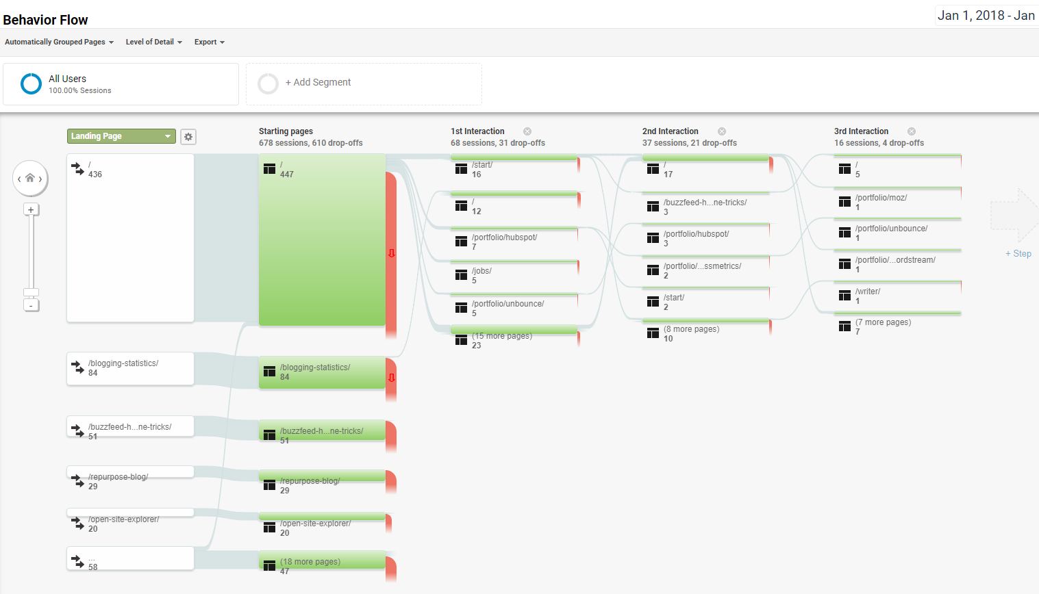 Используйте отчет «Поведение поведения» в Google Analytics, чтобы лучше понять типичные пути, которые люди выбирают на вашем сайте. Затем используйте каждый шаг как возможность предоставить правильные мотивы и триггеры, чтобы держать их в своей воронке.