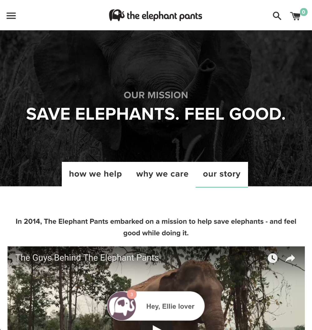 Например, ваш блог или страница истории часто являются идеальной отправной точкой для обучения пользователей. Слоновые штаны использует свою страницу истории для повышения осведомленности, используя ее как внешнюю силу, чтобы подтолкнуть потребителей от одного этапа к другому.